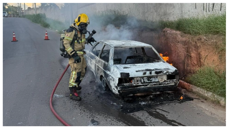 Um veículo foi totalmente destruído por um incêndio na tarde de segunda-feira (12/01), por volta das 17h50, na rua Paulo Ferreira Maia, no bairro Progresso, em Conselheiro Lafaiete. O Corpo de Bombeiros Militar foi acionado por meio do Centro de Operações Bombeiro Militar.